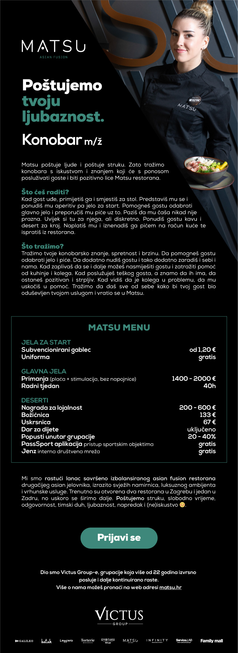 Konobar u Asian Fusion restoranu (m/ž)