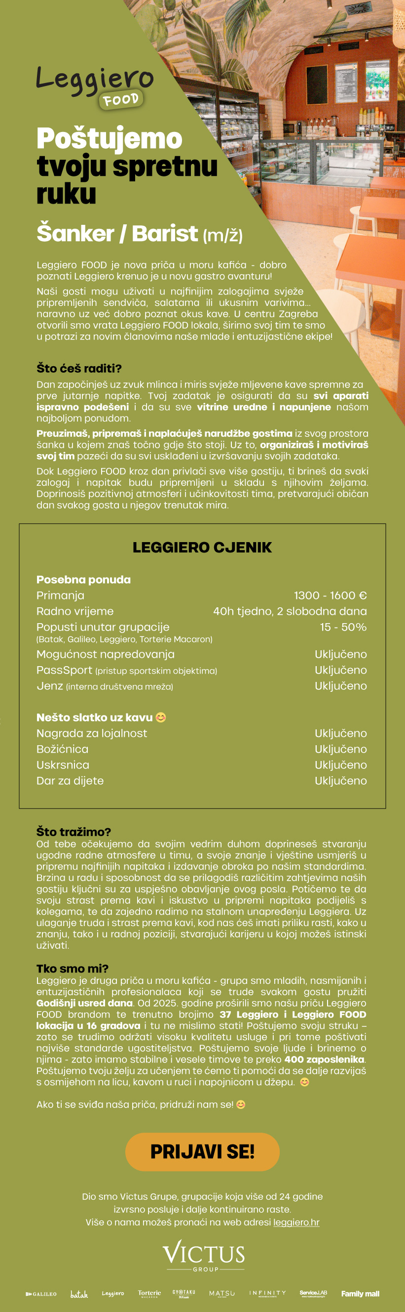 Leggiero FOOD - Šanker/barist (m/ž)