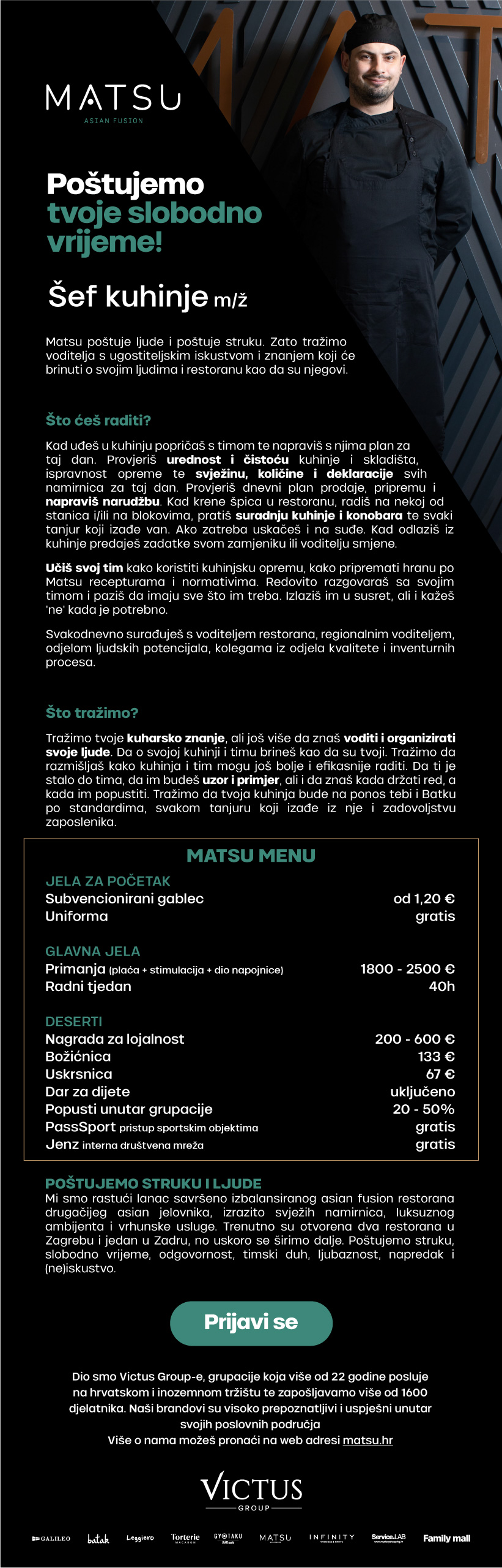 Šef kuhinje u Asian Fusion restoranu (m/ž)