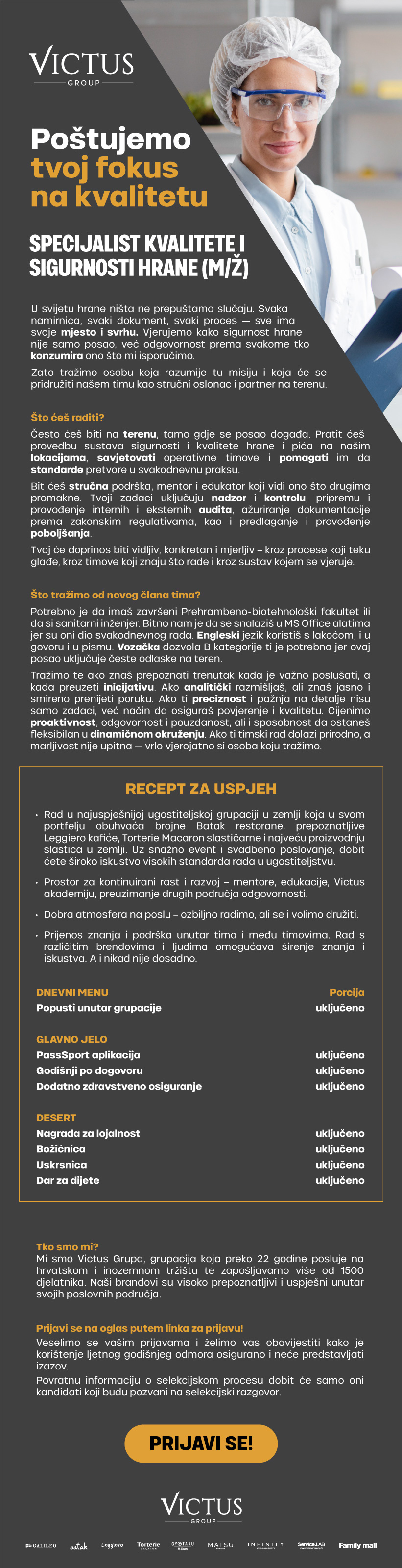 Specijalist kvalitete i sigurnosti hrane (m/ž)